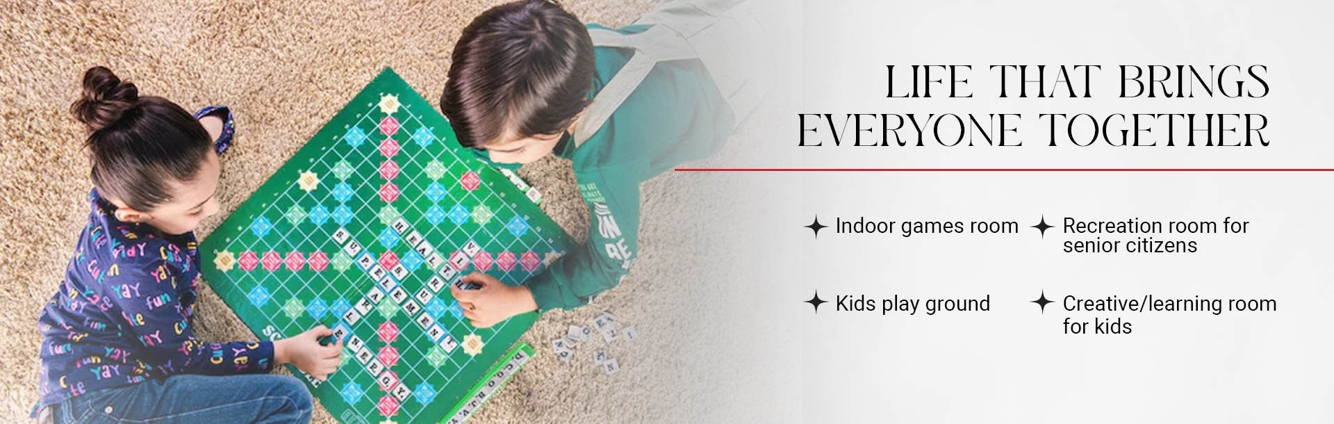 - Children’s play area and senior citizen zones